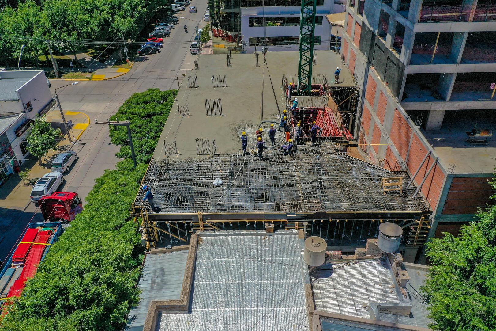Las áreas de estacionamiento se ubican en Planta Baja, primero, segundo y tercer piso, con un mínimo subsuelo que resuelve las necesidades de sala de máquinas para todo el conjunto.